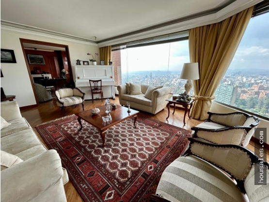 La imponente vista sobre la ciudad desde un piso 11 en chicó alto, no tiene comparación. Este clásico apartamento con 288 mts nos recibe con un hall a donde llega el ascensor directo al apartamento.